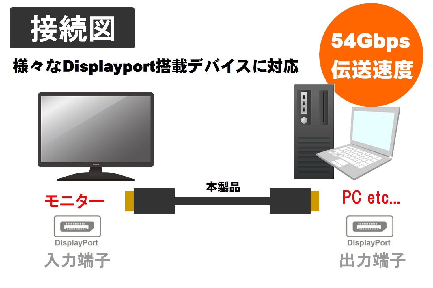 DisplayPort ケーブル16K対応 Ver.2.1 Displayportケーブル